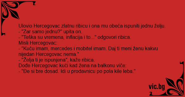Dođe Hercegovac kući kad žena na balkonu viče: