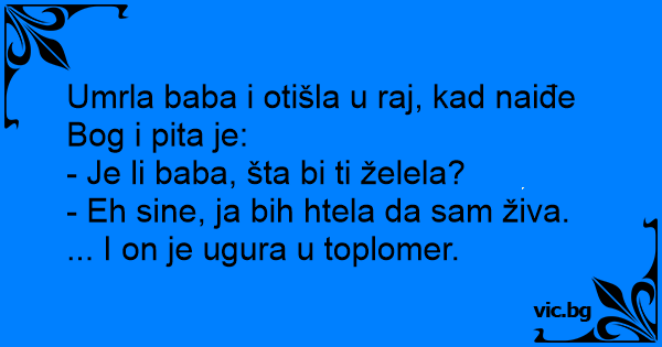 Umrla baba i otišla u raj, kad naiđe Bog i pita je: