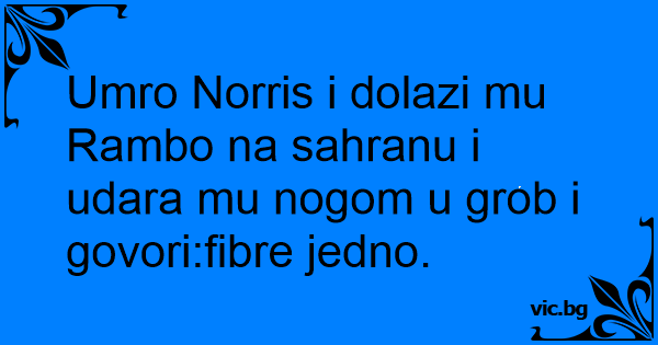 Umro Norris i dolazi mu Rambo na sahranu i udara mu nogom u grob i govori:fibre jedno.