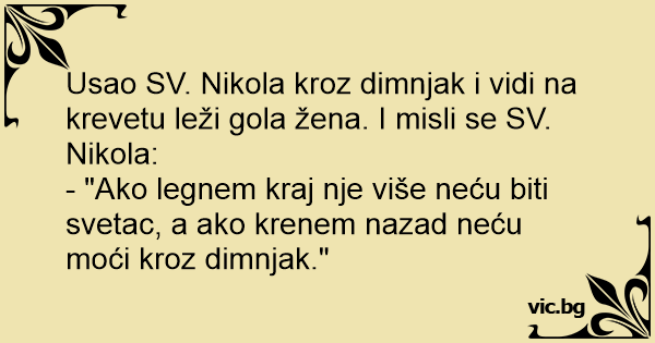 Usao SV. Nikola kroz dimnjak i vidi na krevetu leži gola žena. I misli se SV. Nikola: