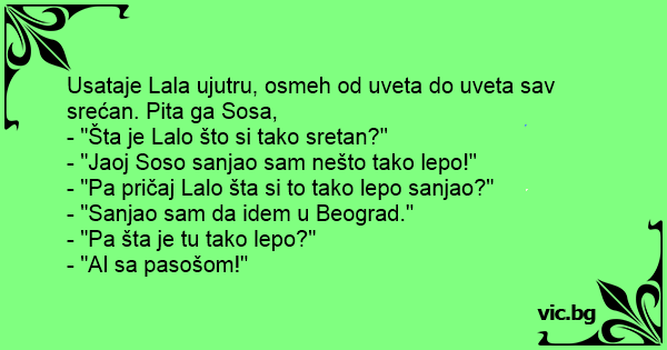 - "Šta je Lalo što si tako sretan?"