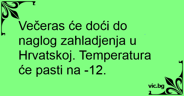 Večeras će doći do naglog zahladjenja u Hrvatskoj. Temperatura će pasti na -12. 51 0 0 Sportski vicevi