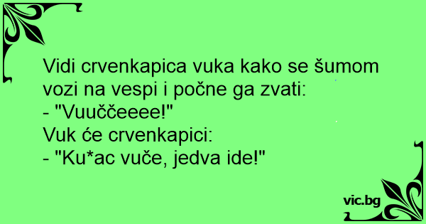 Vidi crvenkapica vuka kako se šumom vozi na vespi i počne ga zvati: