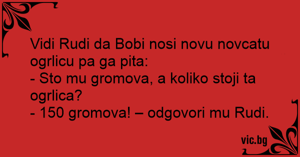 Vidi Rudi da Bobi nosi novu novcatu ogrlicu pa ga pita: