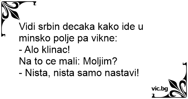 Vidi srbin decaka kako ide u minsko polje pa vikne: