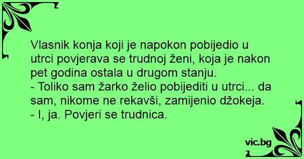 - Toliko sam žarko želio pobijediti u utrci... da sam, nikome ne rekavši, zamijenio džokeja.