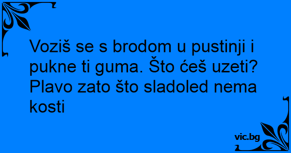 Voziš se s brodom u pustinji i pukne ti guma. Što ćeš uzeti?