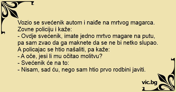 - Ovdje svećenik, imate jedno mrtvo magare na putu, pa sam zvao da ga maknete da se ne bi netko slupao.