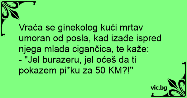 Vraća se ginekolog kući mrtav umoran od posla, kad izađe ispred njega mlada cigančica, te kaže:
