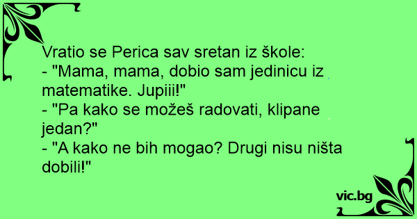 - "Mama, mama, dobio sam jedinicu iz matematike. Jupiii!"