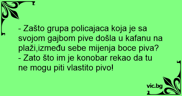 - Zašto grupa policajaca koja je sa svojom gajbom pive došla u kafanu na plaži,između sebe mijenja boce piva?
