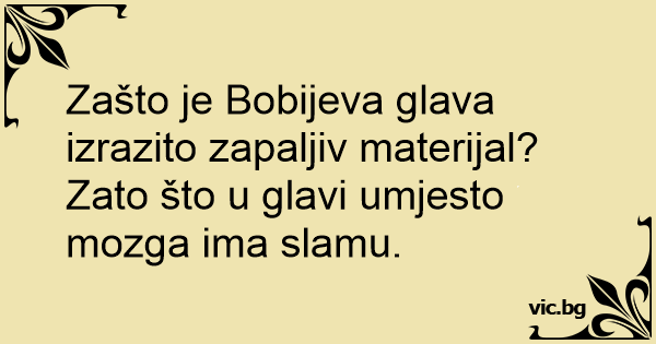 Zašto je Bobijeva glava izrazito zapaljiv materijal?Zato što u glavi umjesto mozga ima slamu.