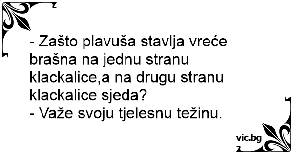 - Zašto plavuša stavlja vreće brašna na jednu stranu klackalice,a na drugu stranu klackalice sjeda?