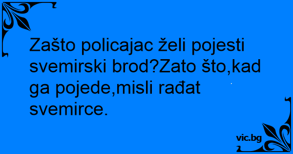Zašto policajac želi pojesti svemirski brod?Zato što,kad ga pojede,misli rađat svemirce.