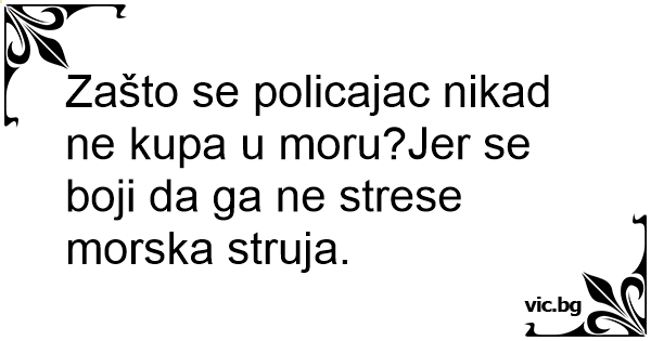 Zašto se policajac nikad ne kupa u moru?Jer se boji da ga ne strese morska struja.
