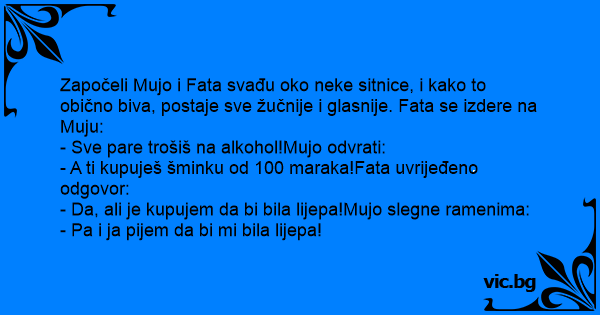 Započeli Mujo i Fata svađu oko neke sitnice, i kako to obično biva, postaje sve žučnije i glasnije. Fata se izdere na Muju:
