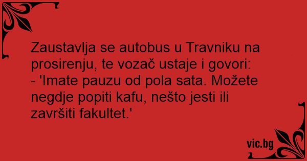 Zaustavlja se autobus u Travniku na prosirenju, te vozač ustaje i govori: