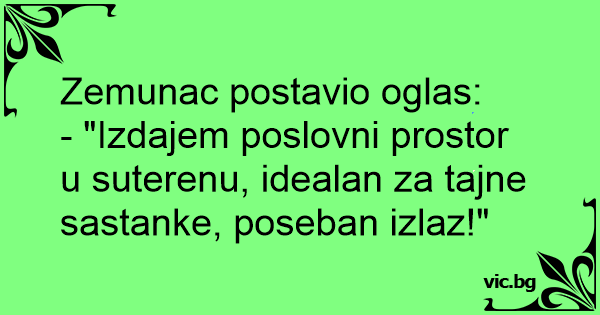 - "Izdajem poslovni prostor u suterenu, idealan za tajne sastanke, poseban izlaz!"