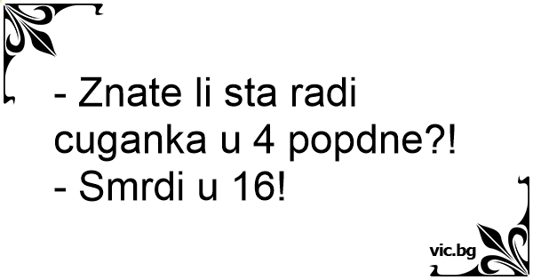 - Znate li sta radi cuganka u 4 popdne?!<br />- Smrdi u 16!