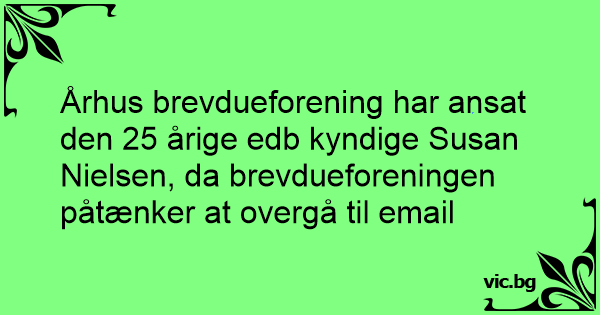 Århus brevdueforening har ansat den 25 årige edb kyndige Susan Nielsen, da brevdueforeningen påtænker at overgå til email