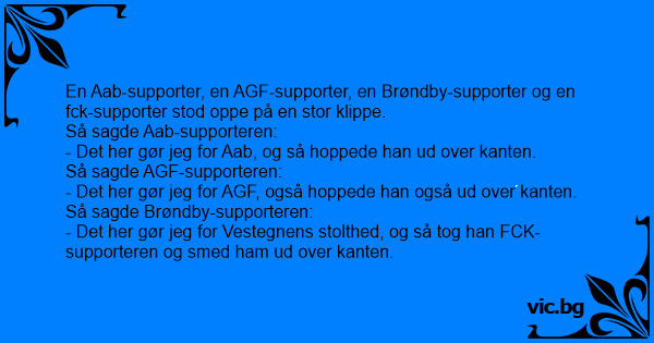 En Aab-supporter, en AGF-supporter, en Brøndby-supporter og en fck-supporter stod oppe på en stor klippe.