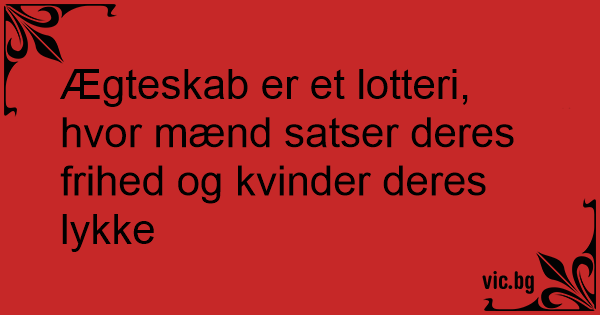 Ægteskab er et lotteri, hvor mænd satser deres frihed og kvinder deres lykke