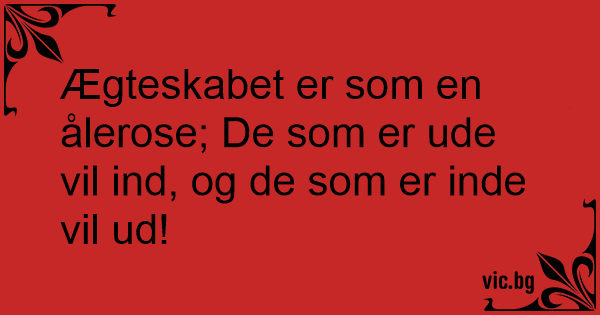 Ægteskabet er som en ålerose; De som er ude vil ind, og de som er inde vil ud!