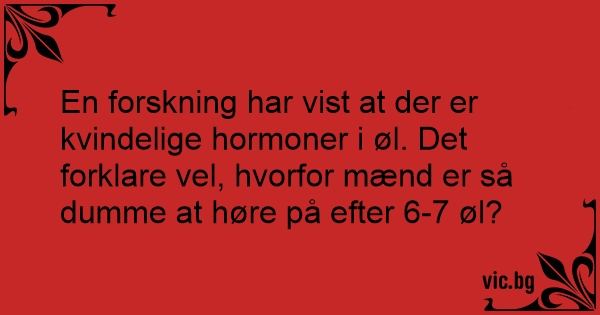En forskning har vist at der er kvindelige hormoner i øl. Det forklare vel, hvorfor mænd er så duмме at høre på efter 6-7 øl?