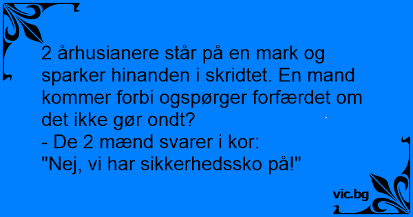 2 århusianere står på en mark og sparker hinanden i skridtet. En mand kommer forbi ogspørger forfærdet om det ikke gør ondt?