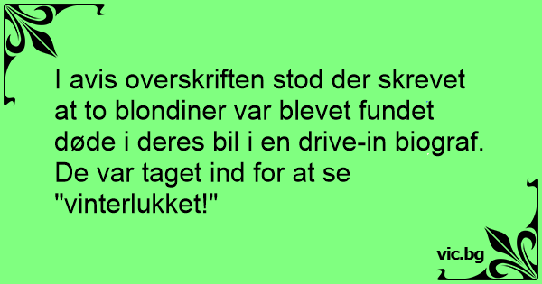 I avis overskriften stod der skrevet at to blondiner var blevet fundet døde i deres bil i en drive-in biograf.
