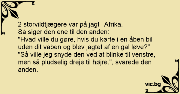 "Så ville jeg snyde den ved at blinke til venstre, men så pludselig dreje til højre.", svarede den anden.