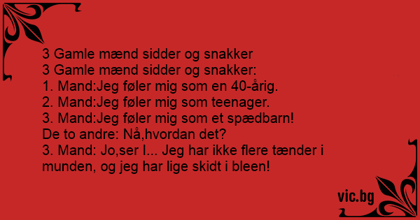3. Mand: Jo,ser I... Jeg har ikke flere tænder i munden, og jeg har lige skidt i bleen!