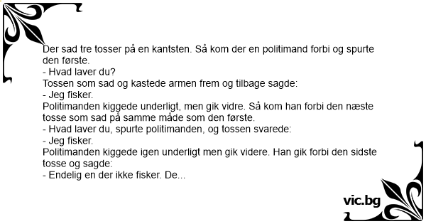 - Hvad laver du, spurte politimanden, og tossen svarede: