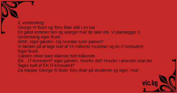 Da klapper George W Bush Tony Blair på skulderen og siger: Hva' var det jeg