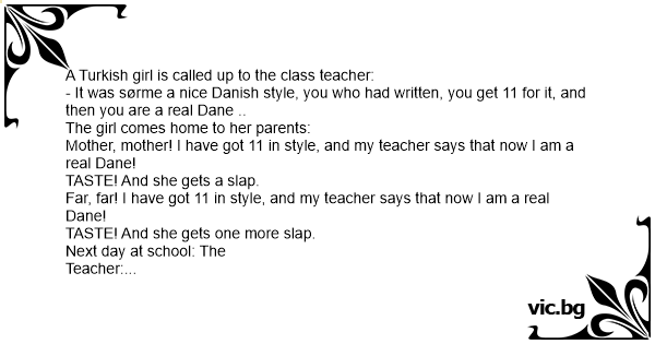 Mother, mother! I have got 11 in style, and my teacher says that now I am a real Dane!