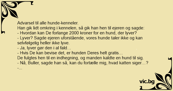- Lyver? Sagde ejeren uforstående, vores hunde taler ikke og kan selvfølgelig heller ikke lyve.
