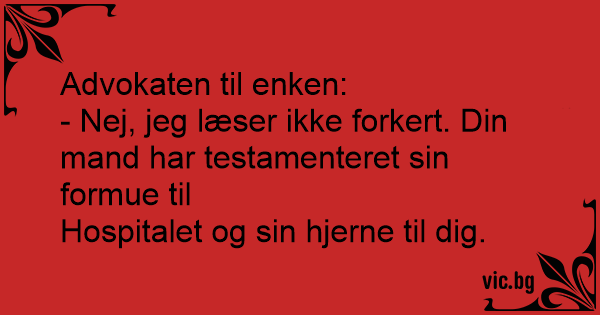 - Nej, jeg læser ikke forkert. Din mand har testamenteret sin formue til