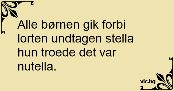 Alle børnen gik forbi lorten undtagen stella hun troede det var nutella.