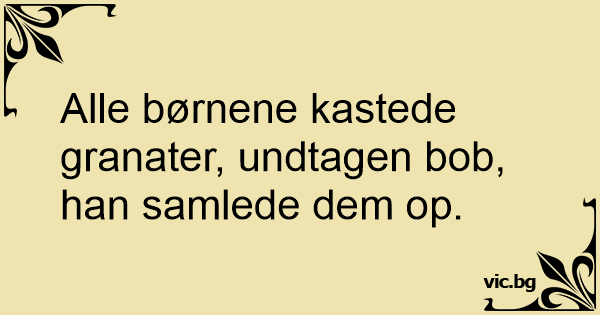 Alle børnene kastede granater, undtagen bob, han samlede dem op.