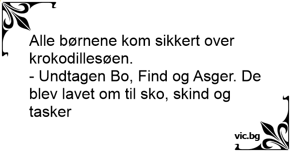 - Undtagen Bo, Find og Asger. De blev lavet om til sko, skind og tasker