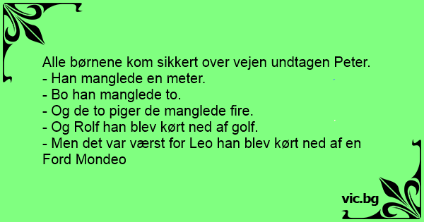 Alle børnene kom sikkert over vejen undtagen Peter.