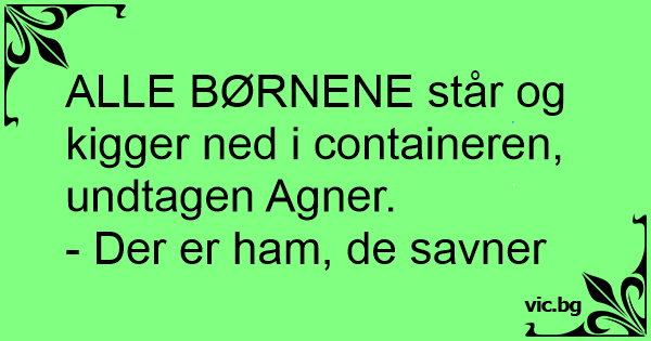 ALLE BØRNENE står og kigger ned i containeren, undtagen Agner.