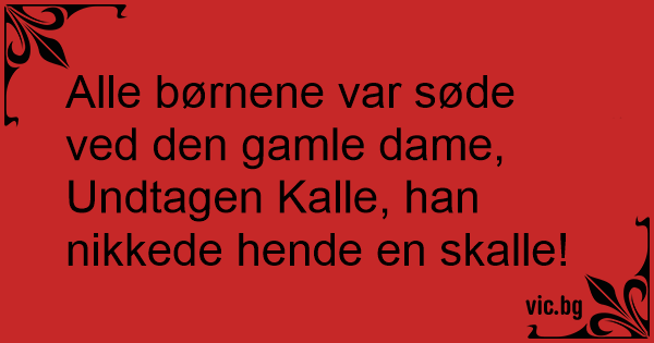 Alle børnene var søde ved den gamle dame, Undtagen Kalle, han nikkede hende en skalle!