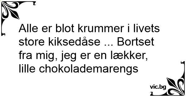 Alle er blot krummer i livets store kiksedåse ... Bortset fra mig, jeg er en lækker, lille chokolademarengs