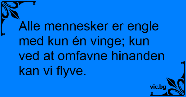 Alle mennesker er engle med kun én vinge; kun ved at omfavne hinanden kan vi flyve.