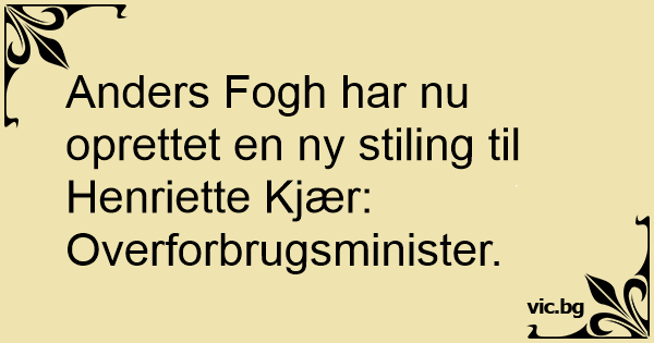 Anders Fogh har nu oprettet en ny stiling til Henriette Kjær: Overforbrugsminister.