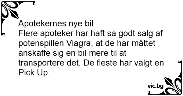 Flere apoteker har haft så godt salg af potenspillen Viаgrа, at de har måttet anskaffe sig en bil mere til at transportere det. De fleste har valgt en Pick Up.