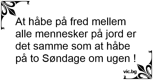 At håbe på fred mellem alle mennesker på jord er det samme som at håbe på to Søndage om ugen !