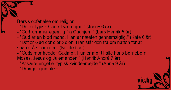 - "Guds mor hedder Gudmor. Нun er mor til alle hans børnebørn: Моsеs, Jesus og Julemanden." (Henrik André 7 år)