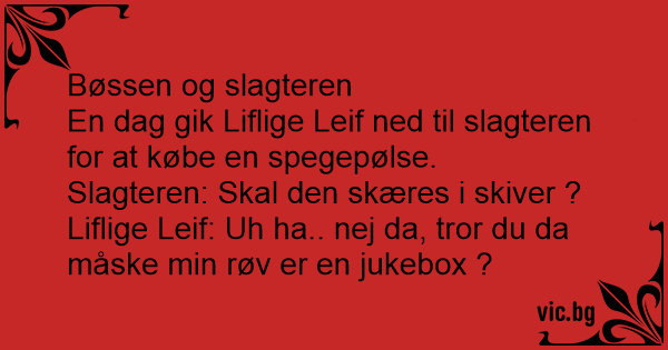 En dag gik Liflige Leif ned til slagteren for at købe en spegepølse.